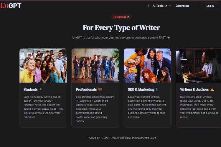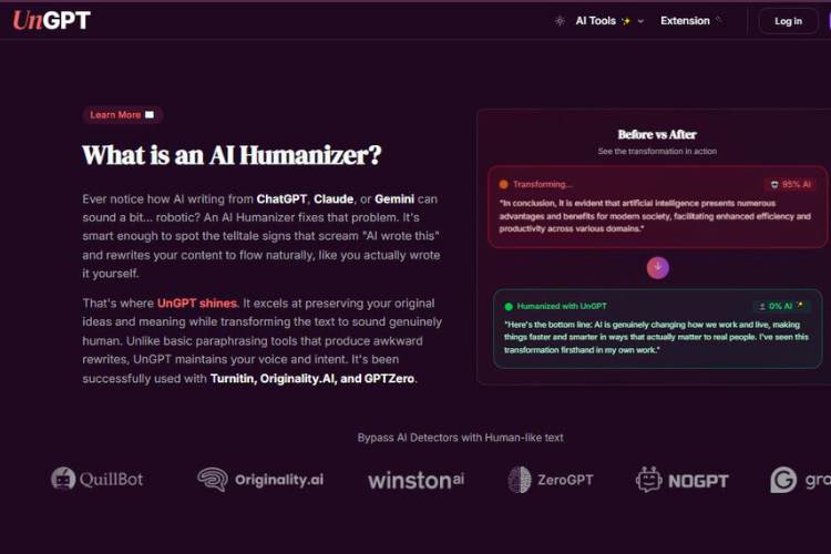 Lo primero que noté de UnGPT fue lo limpia y despejada que se veía la interfaz. Sin paneles abrumadores ni ventanas emergentes agresivas; solo un cuadro de texto, un botón y una promesa: «Descubre si esto es IA».